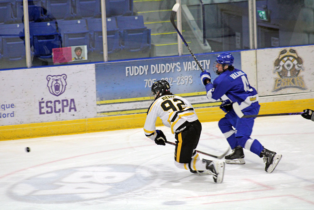 In the second period, Iroquois Falls cracked the goose egg at 7:20 when Alexandre St. Pierre finished off a two-man break off a pass from Mathieu Ouellette.