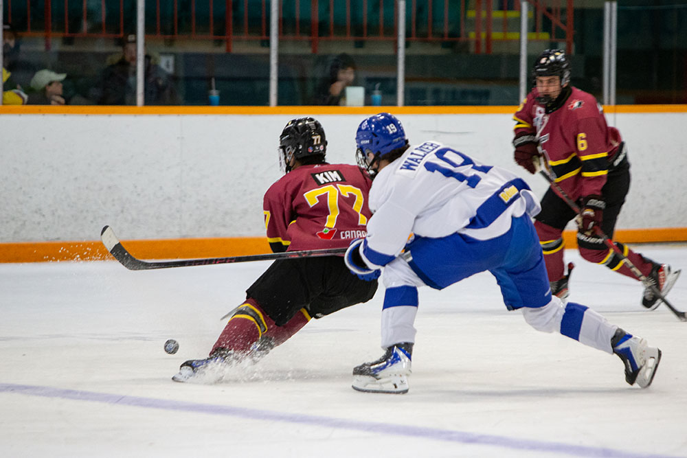 Timmins got one back while up a skater themselves at 9:03 thanks to Maxfeld Shin finishing off a crisp passing play with Matteo Paradiso and Matthew Kim.